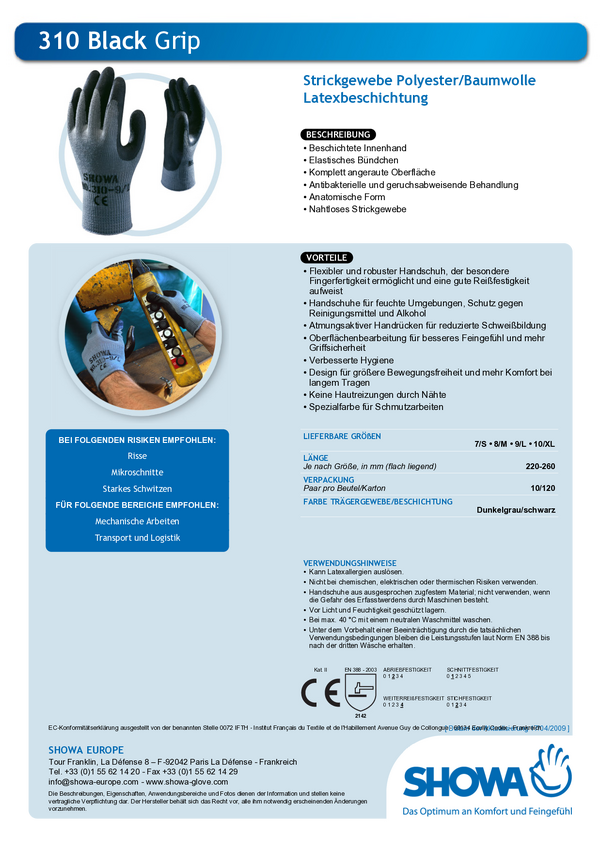 Showa 14905-10 Grip Black Bawełna, Polyester Rękawice robocze Rozmiar rękawic: 10, XL EN 388 CAT II 1 par(a)