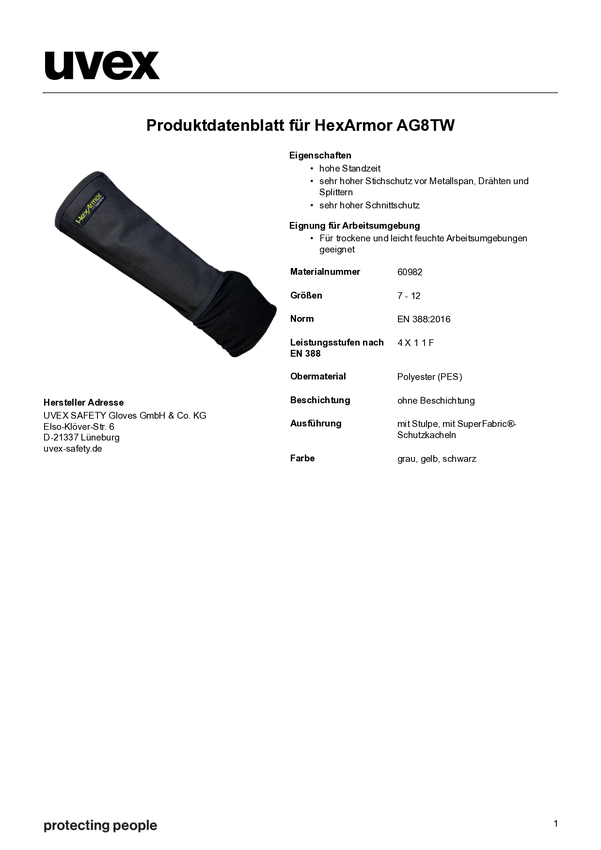 HexArmor AG8TW 6098204 Polyester Ochraniacze na ramiona Rozmiar rękawic: 10 EN 388 1 szt.