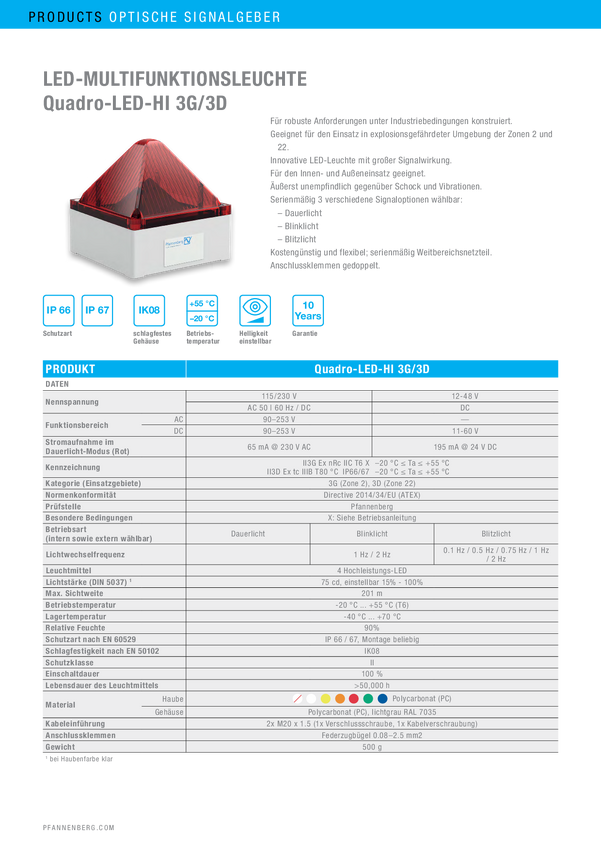 Lampa migająca Pfannenberg QUADRO LED-HI-3G/3D LV AM LED pomarańczowy Flesz 24 V/DC