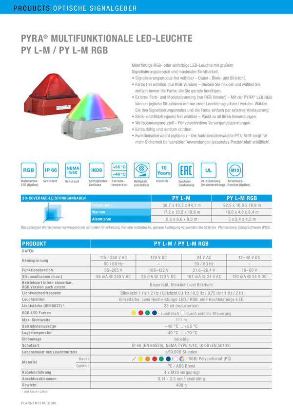 Sygnalizator świetlny Pfannenberg PY L-M 10-60 DC AM 7035 LED pomarańczowy Flesz, światło ciągłe, światło migające 24 V/