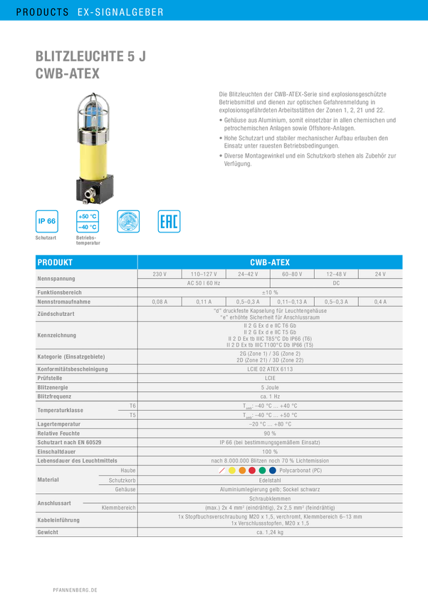 Lampa migająca Pfannenberg CWB-ATEX 12-48DC 24-42AC PC AM pomarańczowy 48 V/DC, 42 V/AC