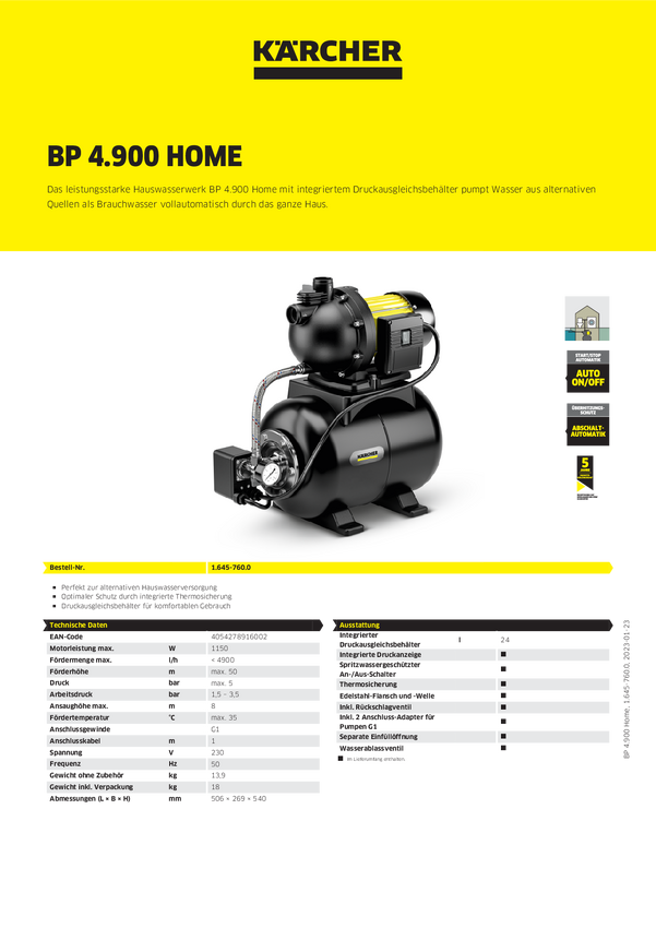 Kärcher Home & Garden 1.645-760.0 Pompa do wody BP 4.900 Home 230 V 4900 l/h
