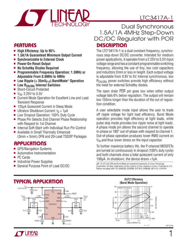 Dual Synchronous 1.5A/1A 4MHz Step-Down DC/DC Regulator with POR
