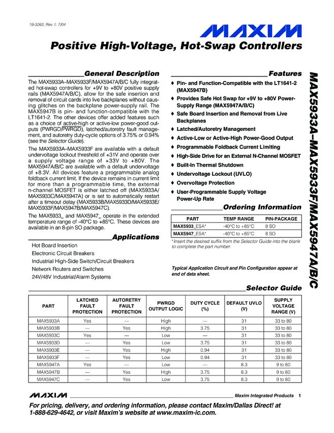 MAX5933, MAX5933A, MAX5933B, MAX5933C, MAX5933D, MAX5933E, MAX5933F, MAX5947, MAX5947A, MAX5947B, MAX5947C Positive High-Voltage, Hot-Swap Controllers