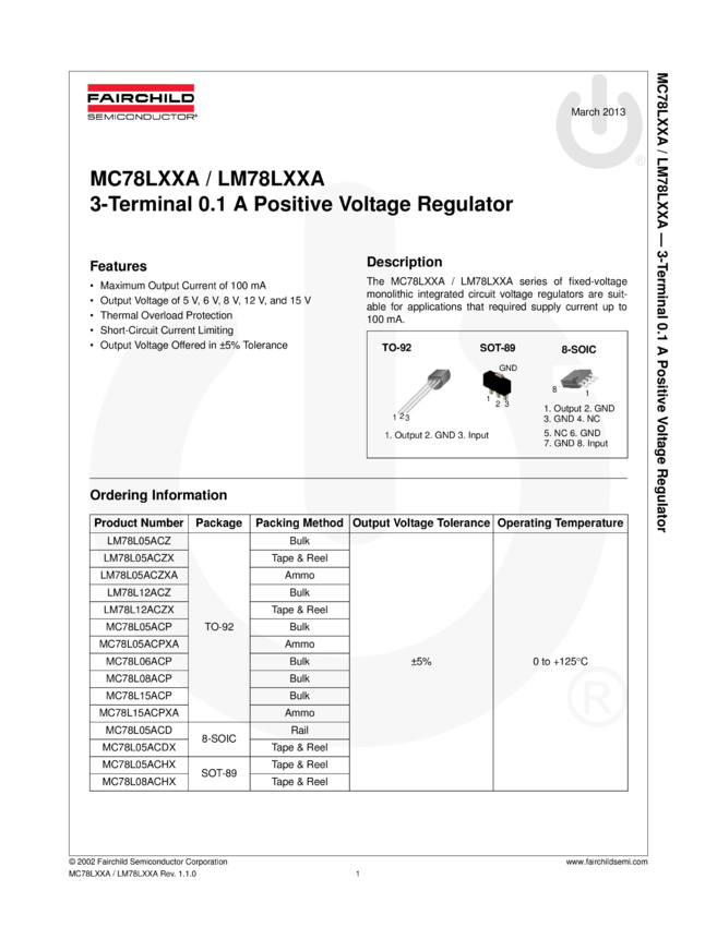 Czujnik Halla w postaci układu scalonego, liniowy, napięcie zasilania 4.5 - 5.5 V, napięcie spoczynkowe 50% Vcc, czułość 5 mV/g, pasmo wyjściowe 17 kHz, zakresy temperaturowe: L
