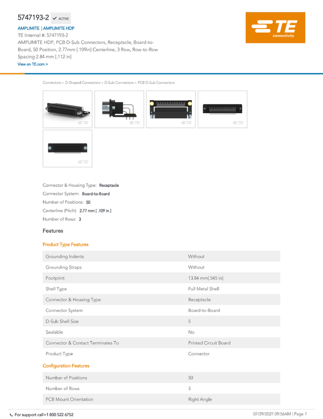 TE Connectivity 4-745287-7 TE AMP AMPLIMITE Metal Shell Posted, 1 szt.