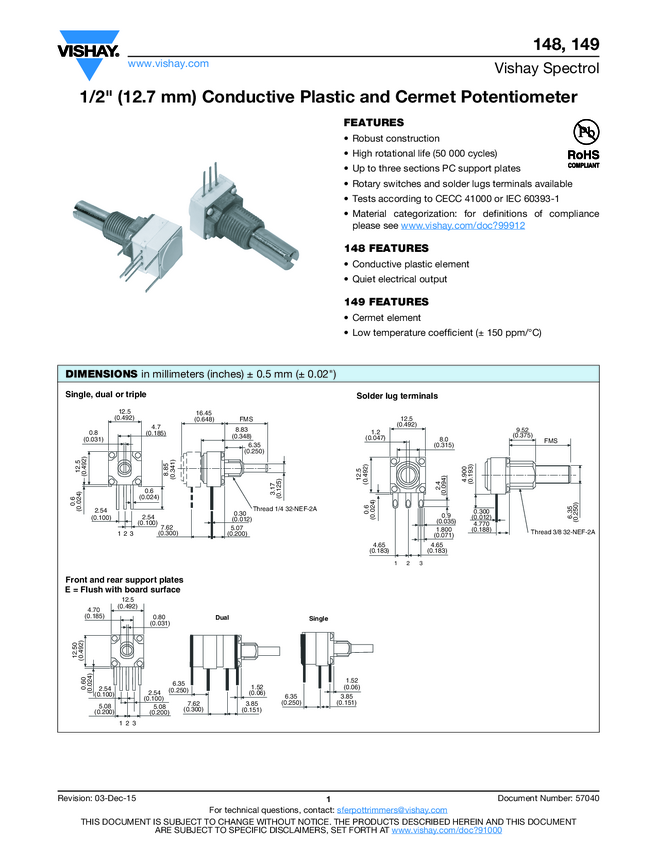 Potencjometr; osiowy; jednoobrotowy; 10K; 1W; 10%; 6,35mm; THT; VISHAY; 14910F0GJSX10103KA; RoHS