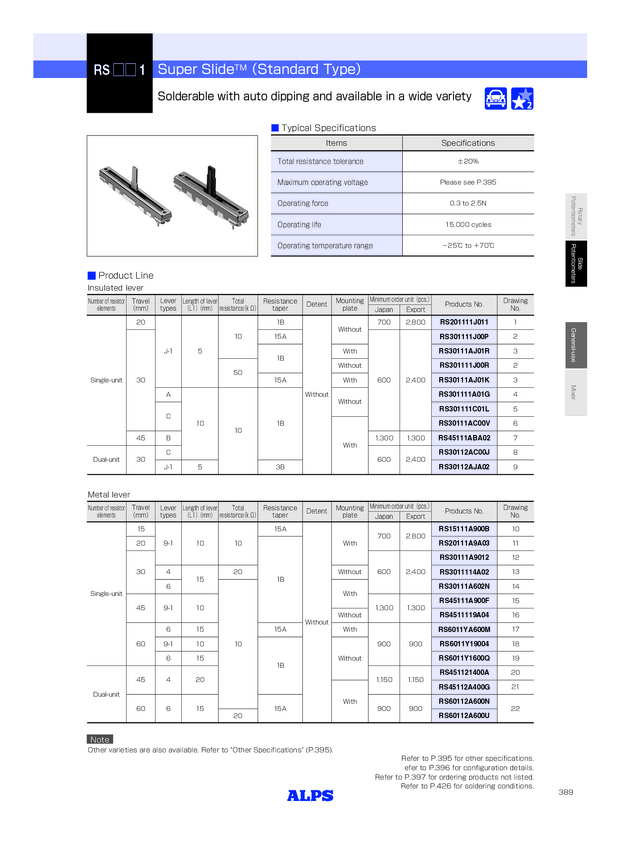 Potencjometr suwakowy; RS45112A400G; 2x10KB; 125mW; 20%; liniowy; stereo; THT; metal; 60x8x7mm; ALPS; RoHS
