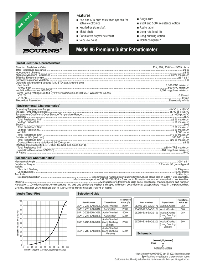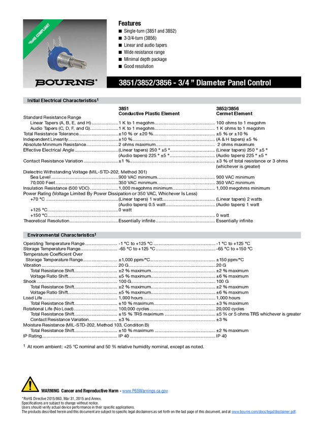 Potencjometr; osiowy; jednoobrotowy; 3852A-282-102AL; 1kOhm; 2W; liniowa; 10%; oś 6,35mm; dł. osi 12,7mm; BOURNS; RoHS