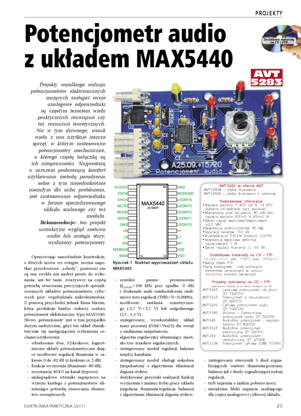 AVT5283 A Potencjometr audio z MAX5440 - płytka drukowana
