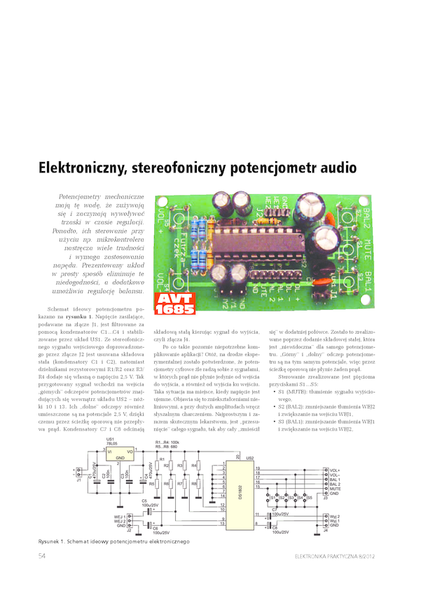 AVT1685 Elektroniczny stereofoniczny potencjometr audio