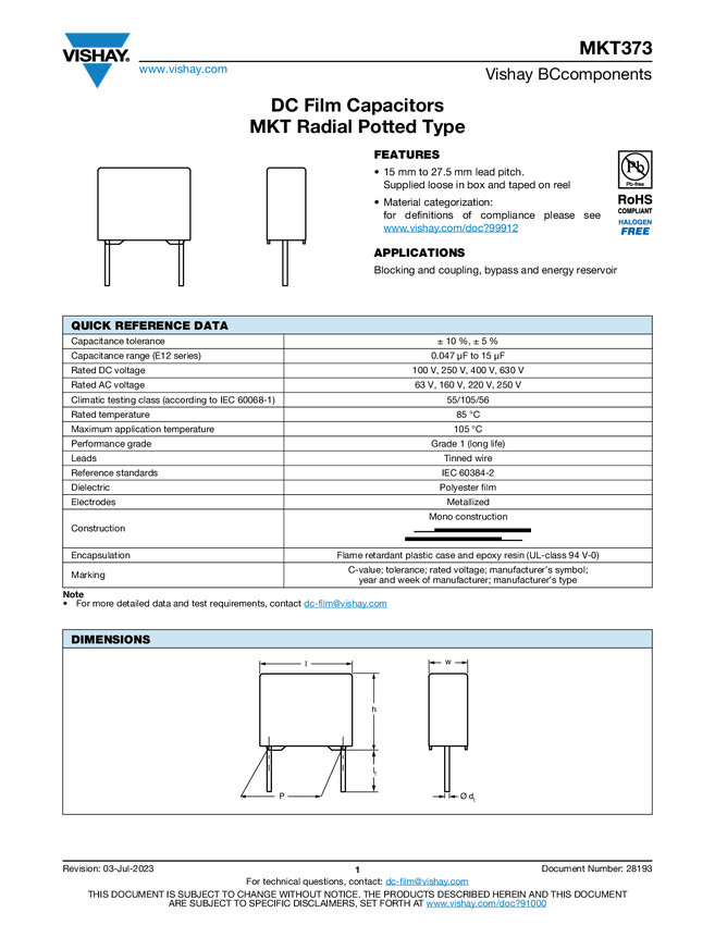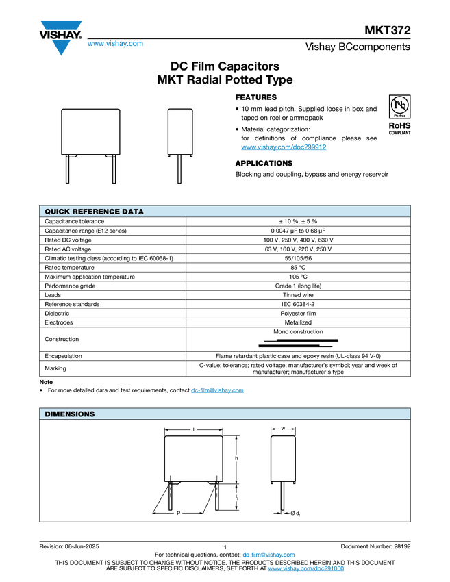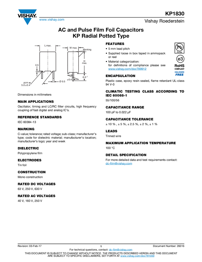 AC and Pulse Film Foil Capacitors KP Radial Potted Type