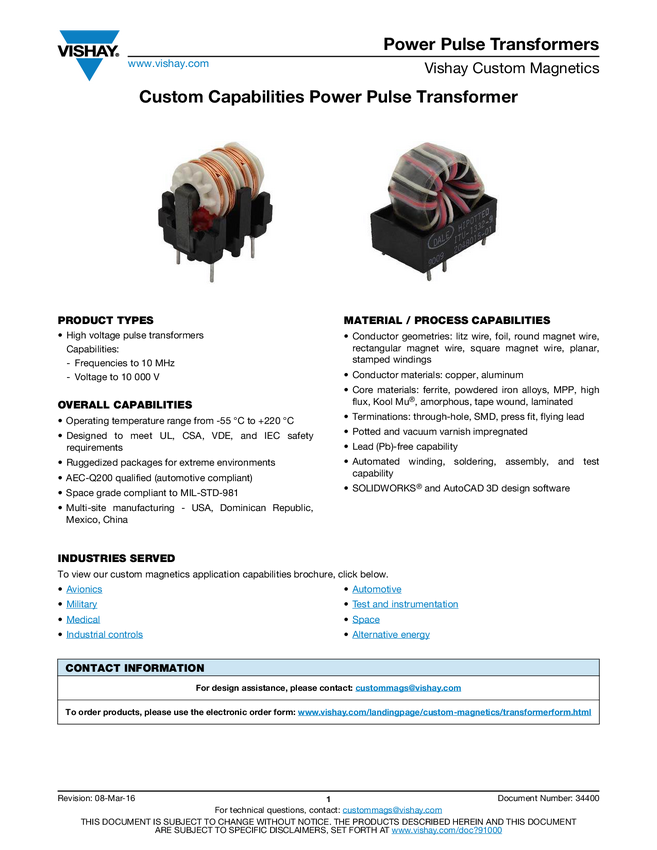 Custom Capabilities Power Pulse Transformer