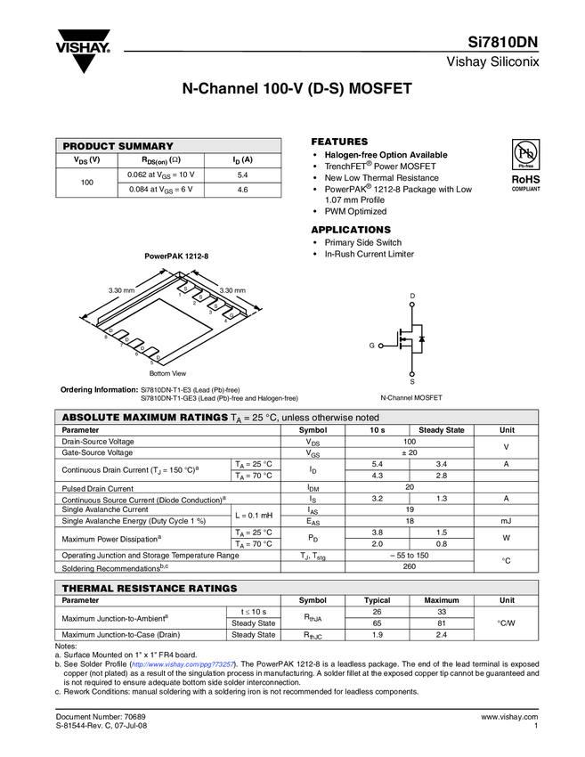 Trans MOSFET N-CH 100V 3.4A 8-Pin PowerPAK 1212 T/R
