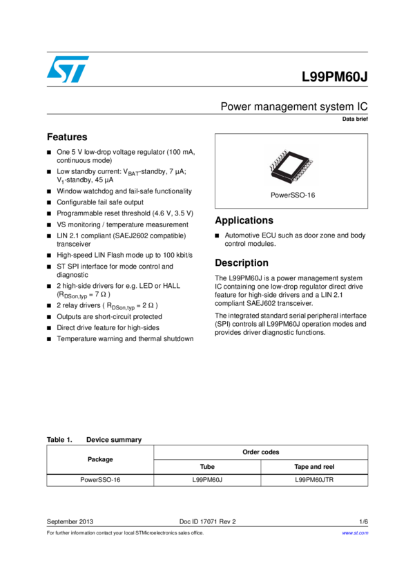 Power Management IC 16-Pin PowerSSO T/R