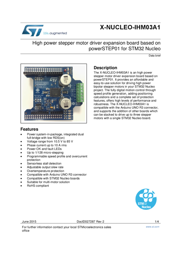High power stepper motor driver expansion board based on powerSTEP01 for STM32 Nucleo