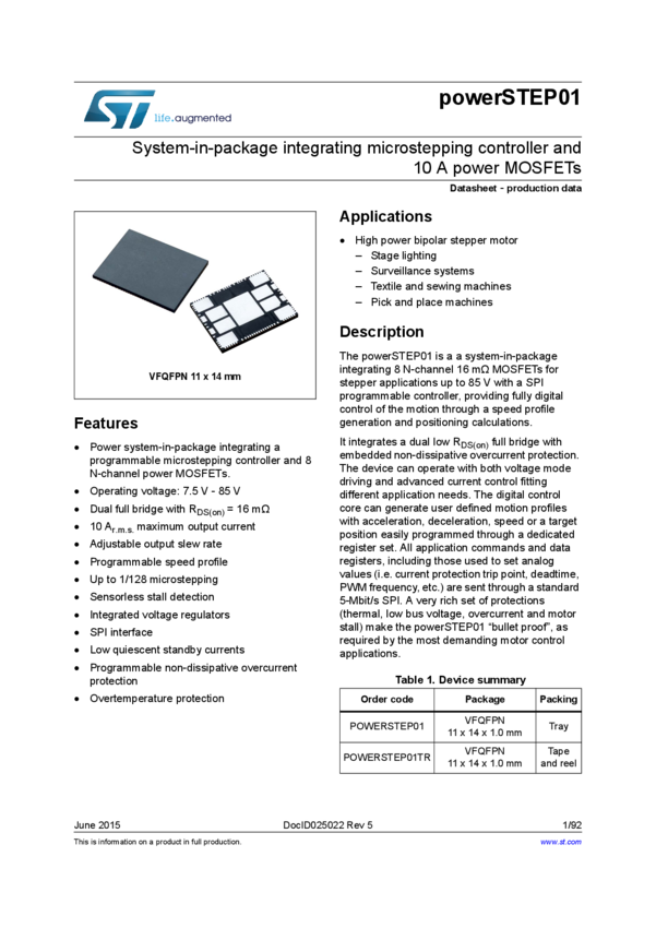 System-in-package integrating microstepping controller and 10 A power MOSFETs