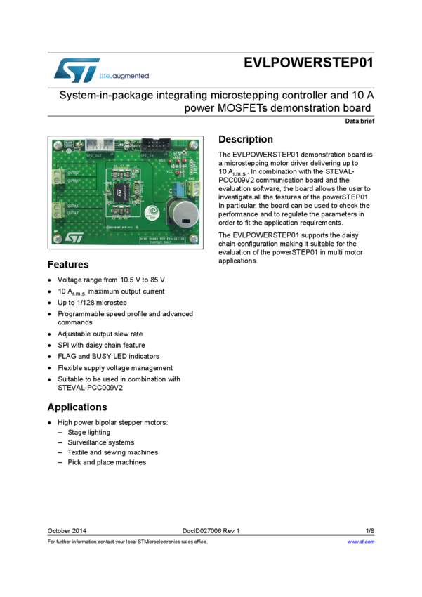 powerSTEP01 Microstepping Controller and Power MOSFET Demonstration Board