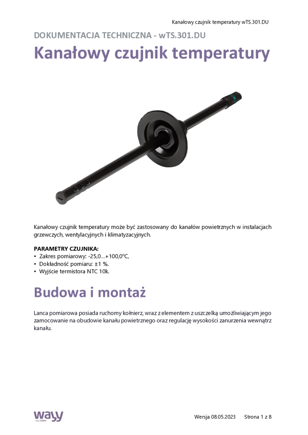 Kanałowy czujnik temperatury powietrza wTS.301.DU