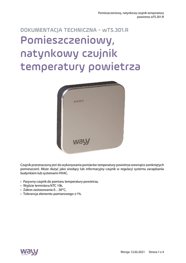Natynkowy czujnik temperatury powietrza wTS.301.R
