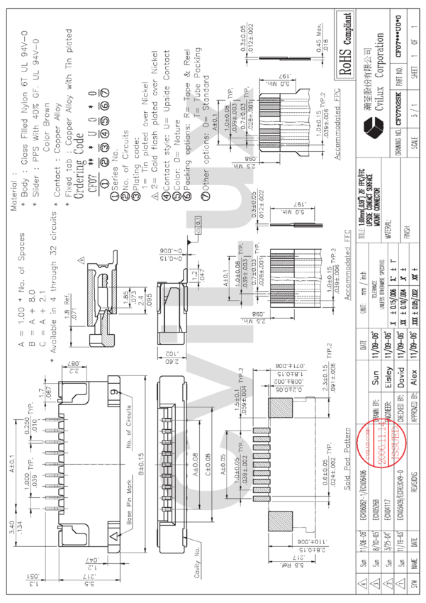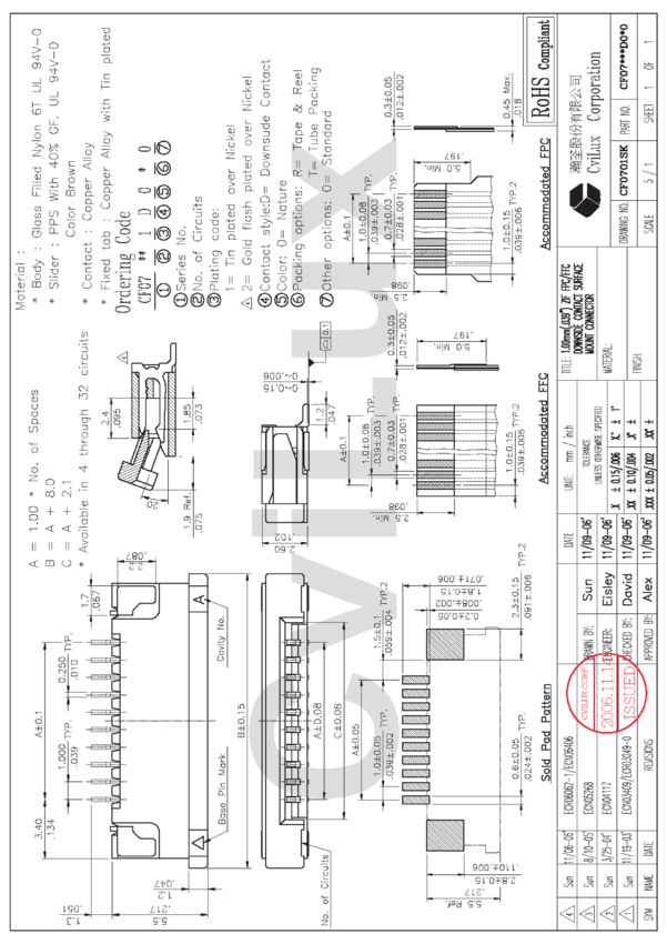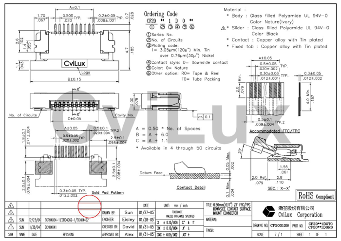 Złącze do tasmy FFC, 14-stykowe, poziome, SMD, CvilLux