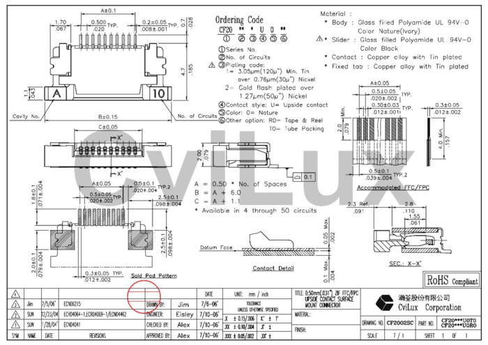 Złącze żeńskie ZIF, 10-stykowe , poziome, , CviLux