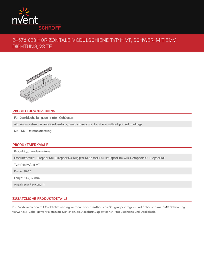 Szyna pozioma nVent SCHROFF 24575474 24575474, 1 szt.