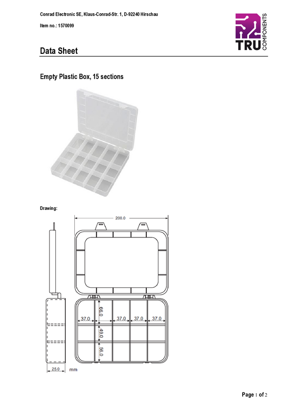 TRU COMPONENTS PP15-01 Skrzynka (D x S x W) 200 x 175 x 26 mm Ilość przegród: 15 stały podział Content 1 szt.