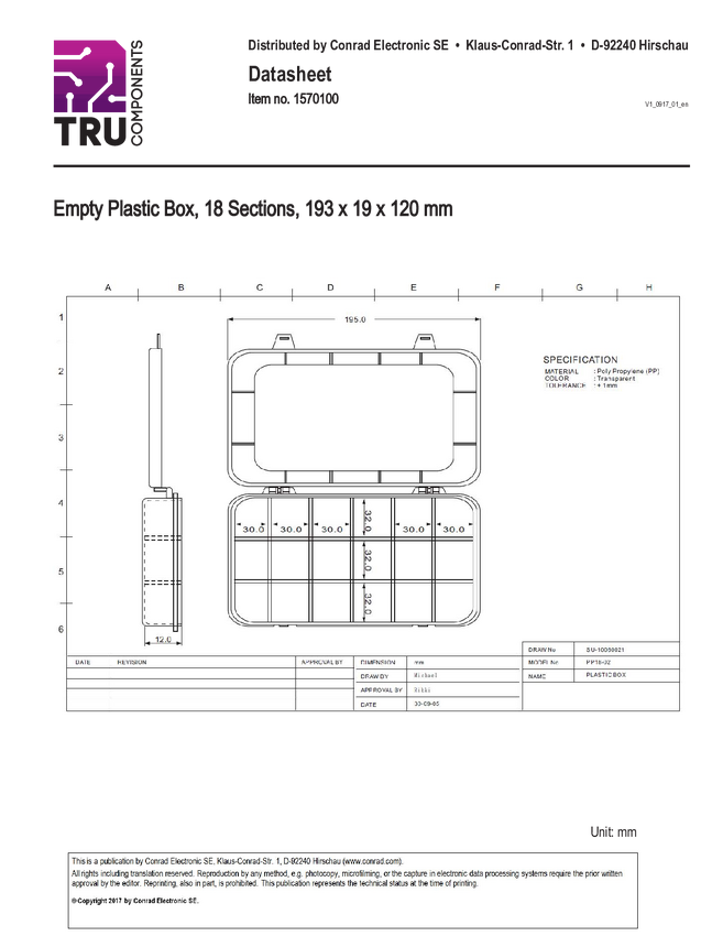 TRU COMPONENTS PP18-01 Skrzynka (D x S x W) 195 x 100 x 13 mm Ilość przegród: 18 stały podział Content 1 szt.