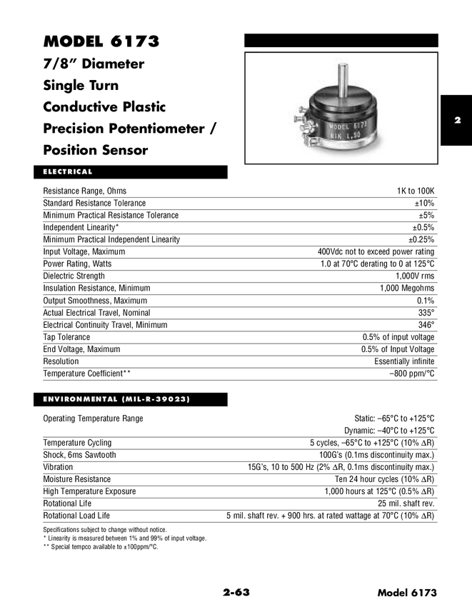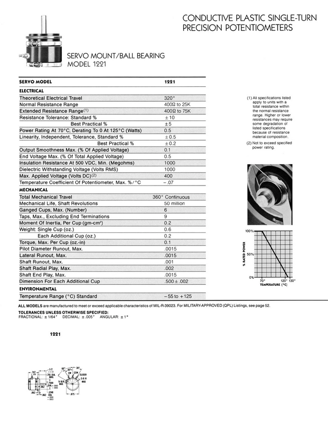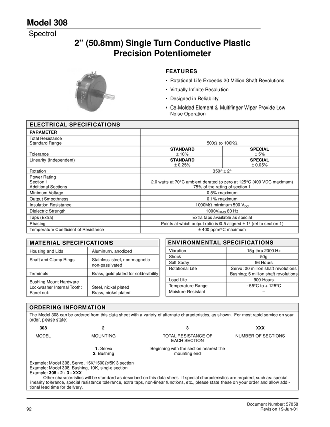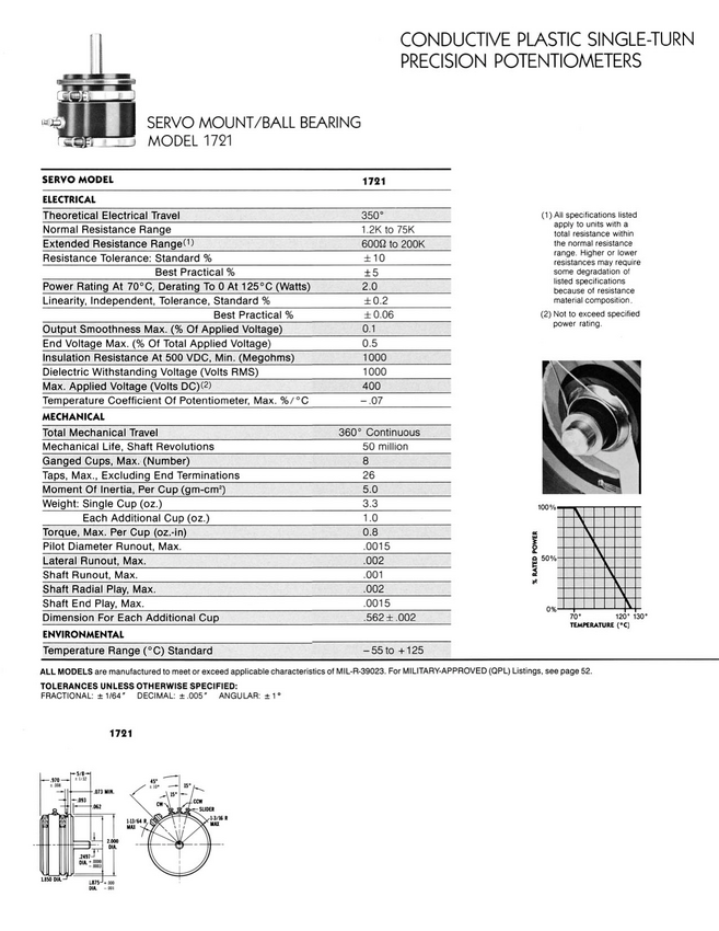 =PP6574 BOURNS;SPECTROL potencjometr przew.plastyk; Servo; lin.0,25%; tol.10% 1 obrotowy; średnica 2"=50,8mm; ośka 1/4"=6,35mm trwałość 20.000.000 obr; moc 2 W