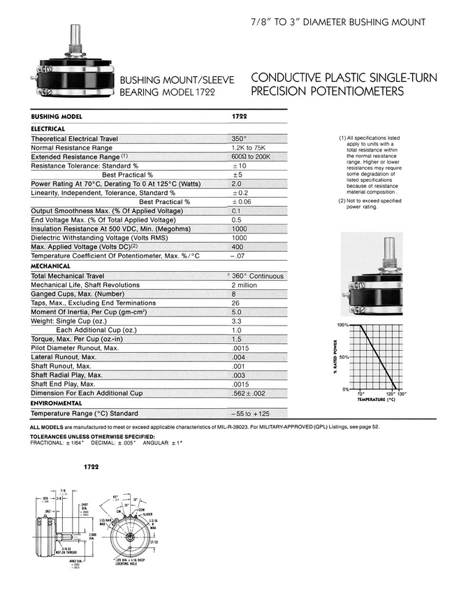 =PP6657 bourns;beckman Conductive plastic, Bushing 1 obrotowy, średnica 1-5/16";ośka 1/4", lin:0,5%