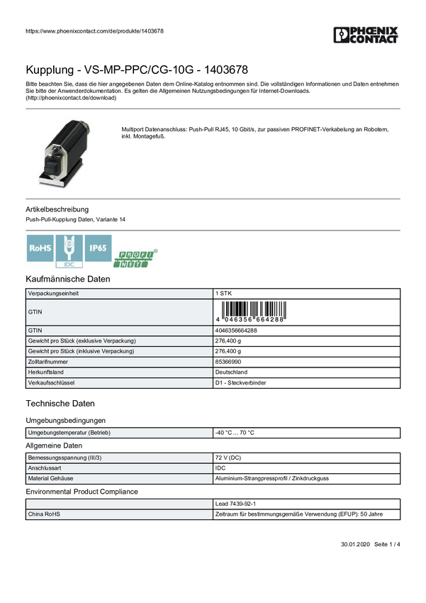 Phoenix Contact VS-MP-PPC/CG-10G Phoenix Contact VS-MP-PPC/CG-10G 1403678 czarny, metal 1 szt.
