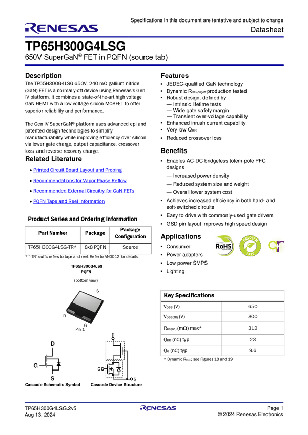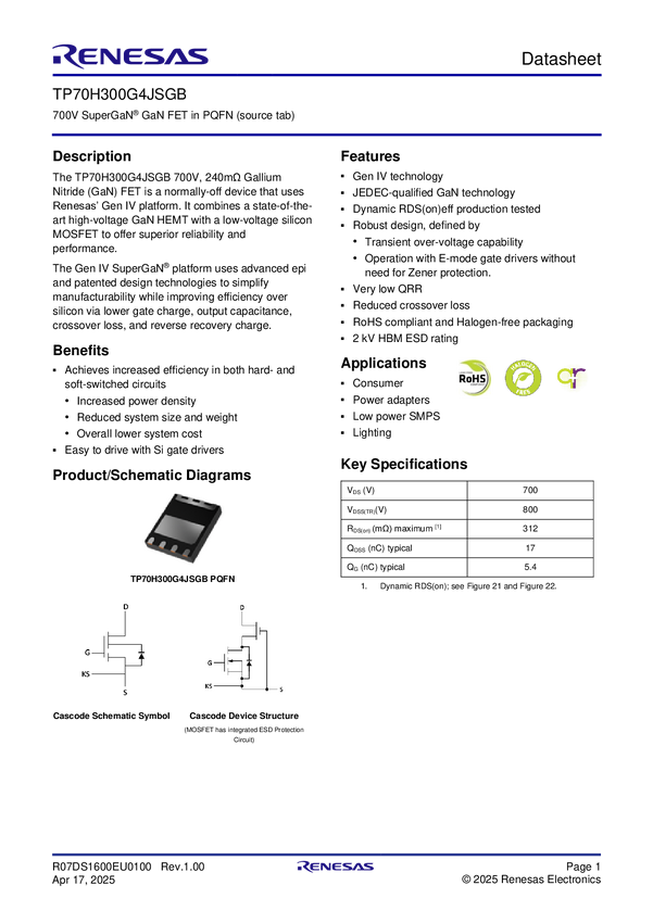 700V 240mΩ SuperGaN GaN FET in PQFN88