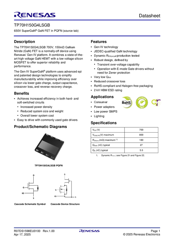 700V 150mΩ SuperGaN FET in PQFN88 Industry Package