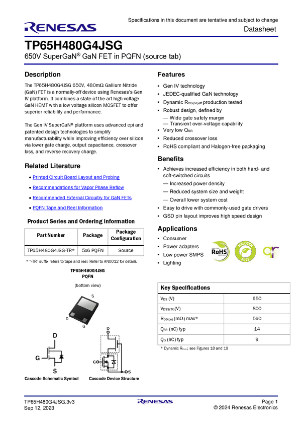 700V 240mΩ SuperGaN GaN FET in PQFN56