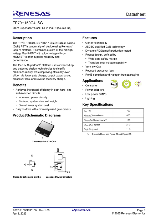 700V 150mΩ SuperGaN FET in PQFN88
