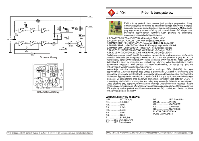 J-004 Próbnik diod i tranzystorów - zestaw do montażu