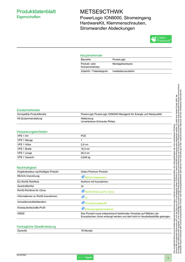Schneider Electric Zestaw osprzętu do wejścia prądowego miernika ION9000 – zaciski śrubowe