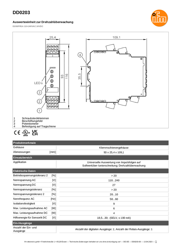 Kontroler prędkości obrotowej DD0203 ifm Electronic 1 szt.