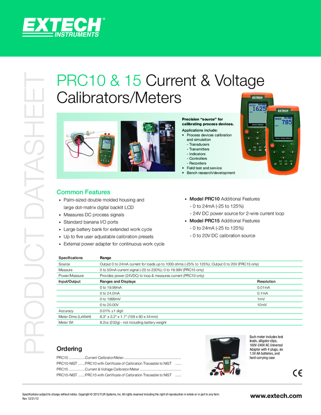 Extech PRC15 Kalibrator Kalibracja (ISO) Napięcie, Natężenie prądu