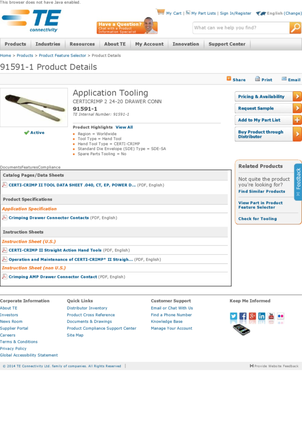 Premium Crimp Tooling Manual, Pneumatic Tetra Crimp / Platform Hand Tool