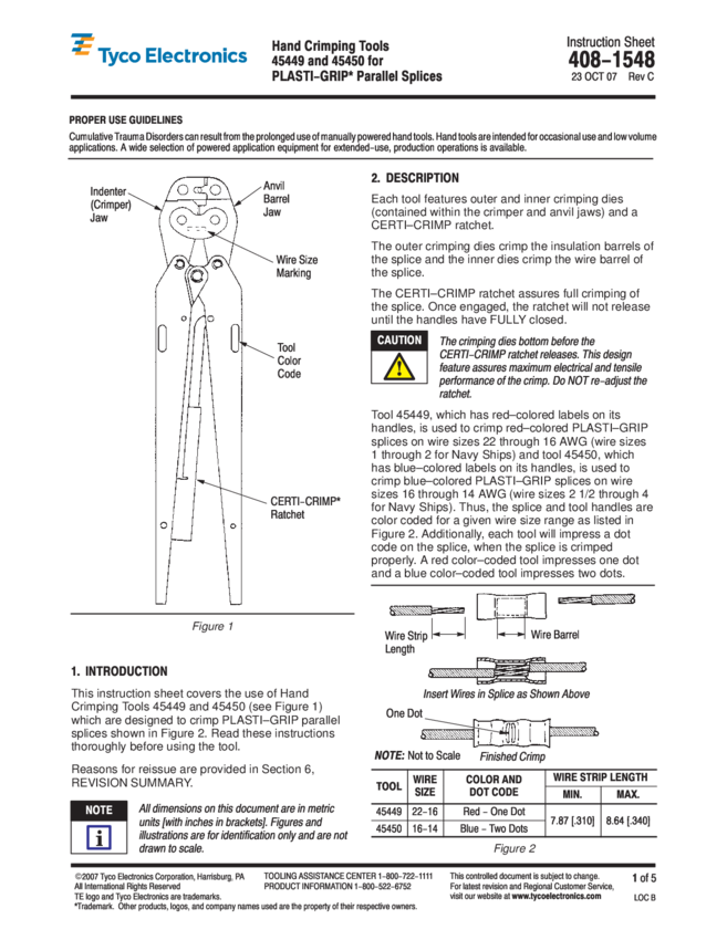 Premium Crimp Tooling Battery, Electric, Manual CERTI-CRIMP II, Straight Action Hand Too