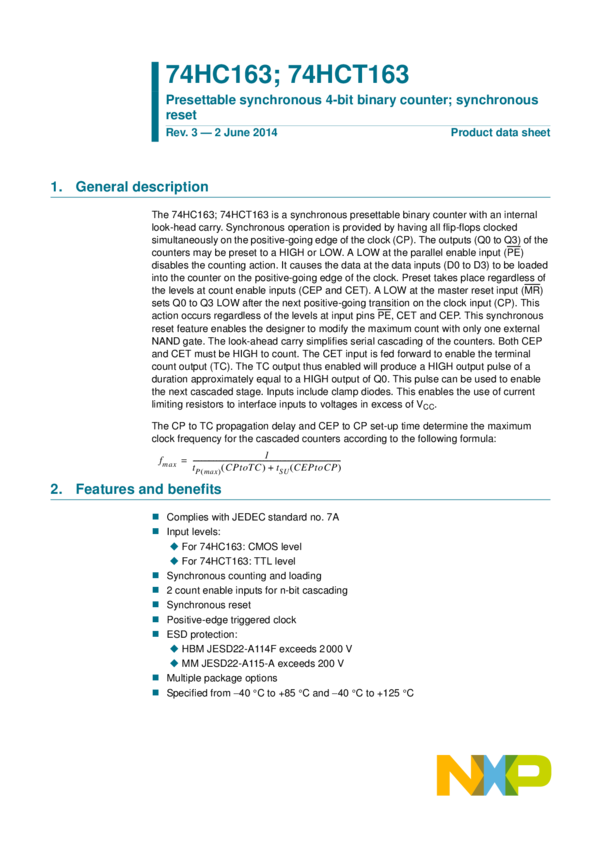 Presettable synchronous 4-bit binary counter; synchronous reset