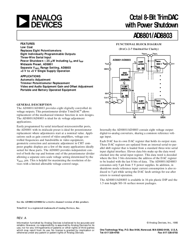 Octal 8-Bit TrimDAC with Power Shutdown & Mid-Scale Preset
