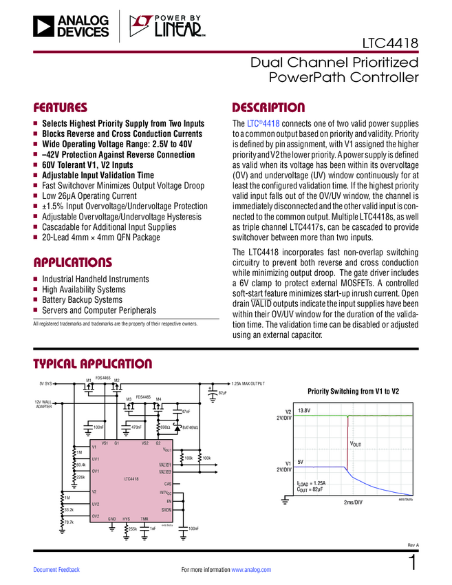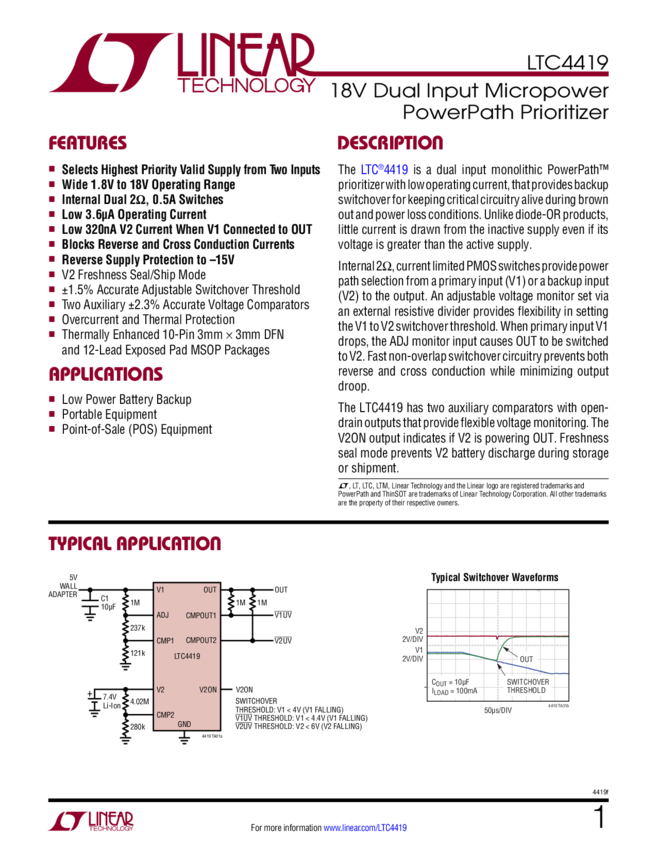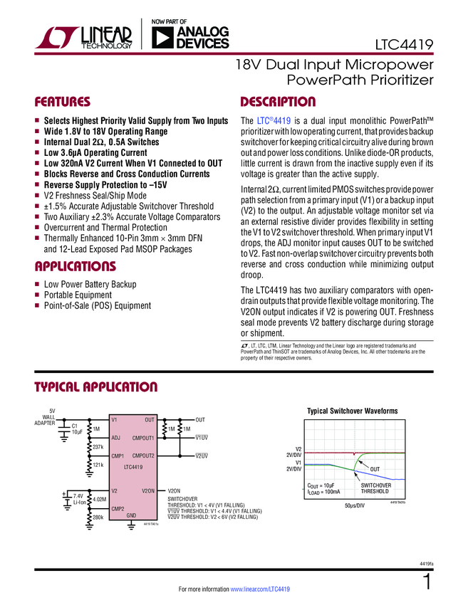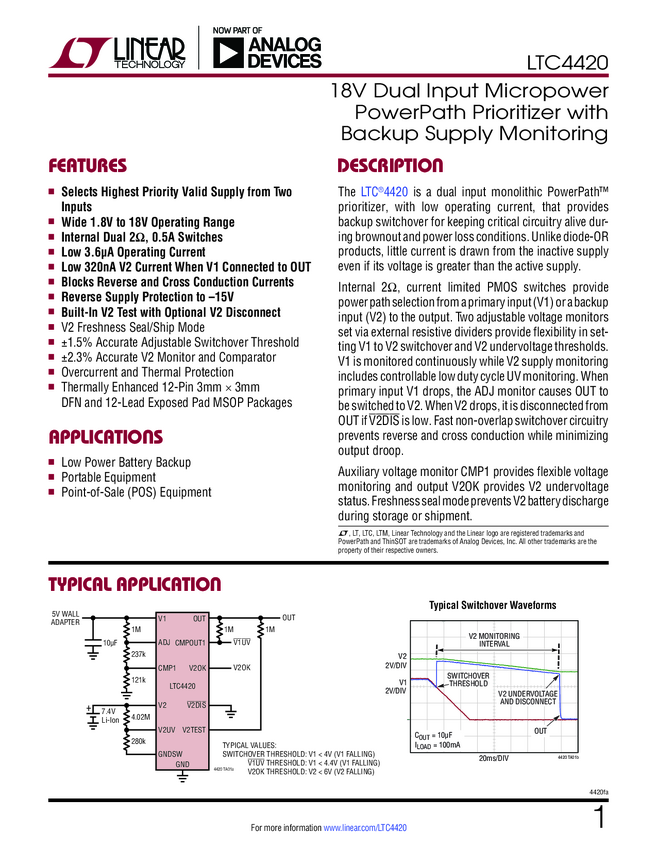 18V Dual Input Micropower PowerPath Prioritizer with Backup Supply Monitoring
