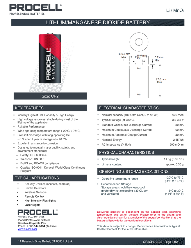 Bateria do aparatu CR 2 PROCELL Procell Intense 920 mAh 3 V 10 szt.