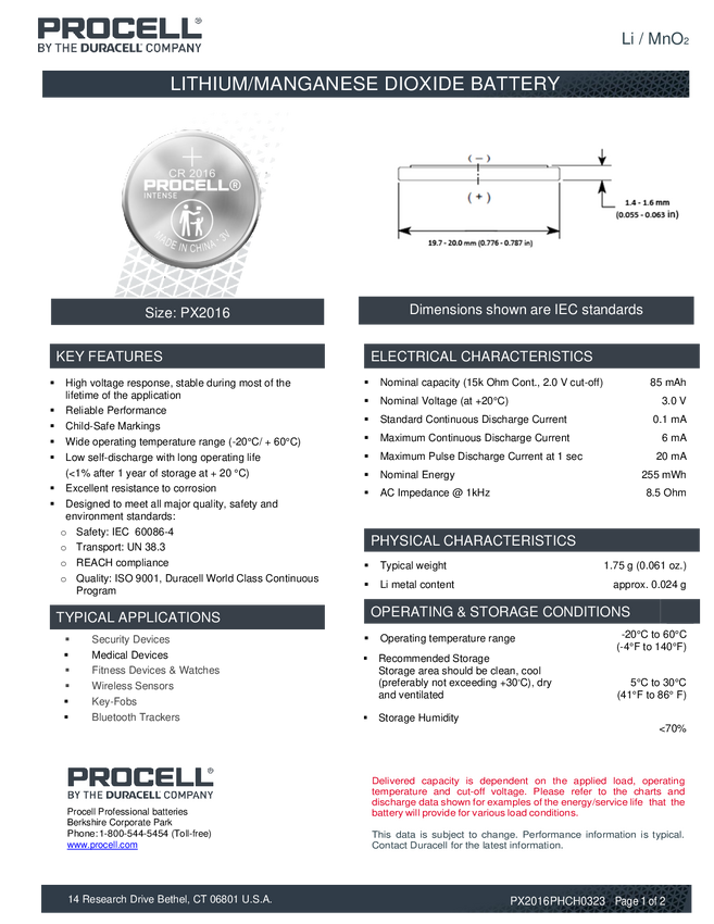 Ogniwo guzikowe CR 2016 PROCELL Procell Intense 3 V 5 szt. litowe