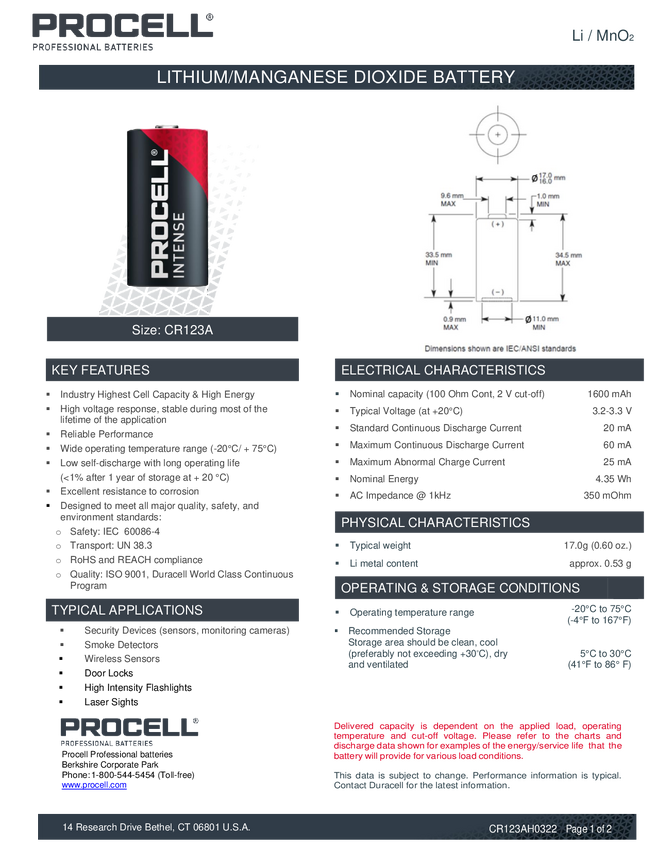 Bateria do aparatu CR-123A PROCELL Procell Intense 920 mAh 3 V 1 szt.