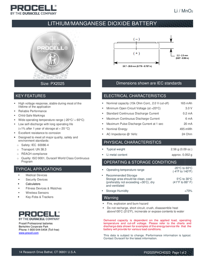 Ogniwo guzikowe CR 2025 PROCELL Procell Intense 3 V 5 szt. litowe