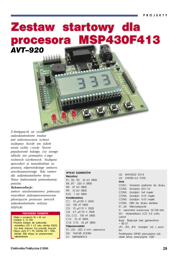 AVT920 A Zestaw startowy dla procesora MSP430F413 - płytka drukowana